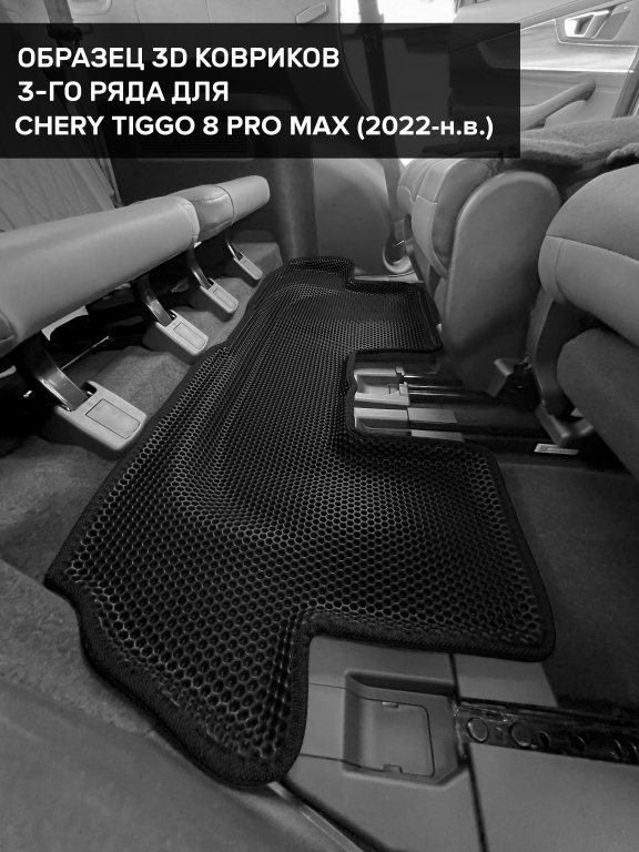Автомобильные 3д коврики для Chery Tiggo 8 Pro Max (2022-н.в.) в салон авто и багажник сделаны из инновационного полимерного материала EVA, изысканная структура в виде ячеек не дает воде, пыли и снегу разлетаться по салону машины и багажнику. 3д коврики зафиксированы на полу определенными клипсами, соответствующими Chery Tiggo 8 Pro Max (2022-н.в.), и не двигаются в процессе езды.