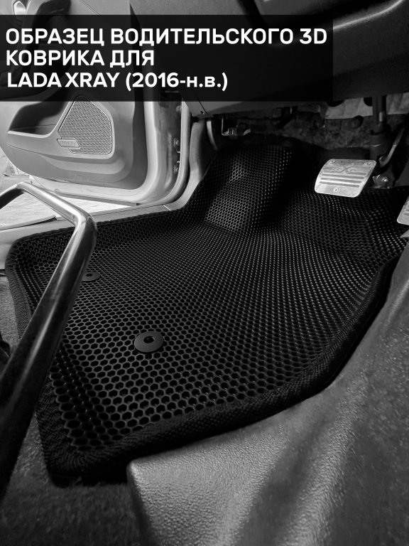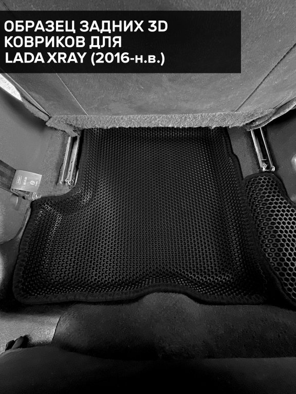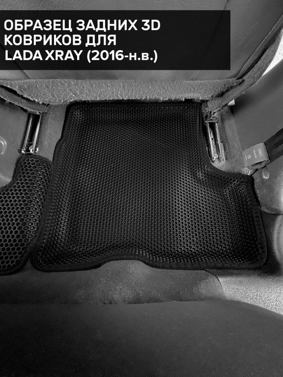 Автомобильные 3д коврики для Lada XRAY (2015-н.в.) в салон авто и багажник сделаны из инновационного полимерного материала EVA, изысканная структура в виде ячеек не дает воде, пыли и снегу разлетаться по салону машины и багажнику. 3д коврики зафиксированы на полу определенными клипсами, соответствующими Lada XRAY (2015-н.в.), и не двигаются в процессе езды.